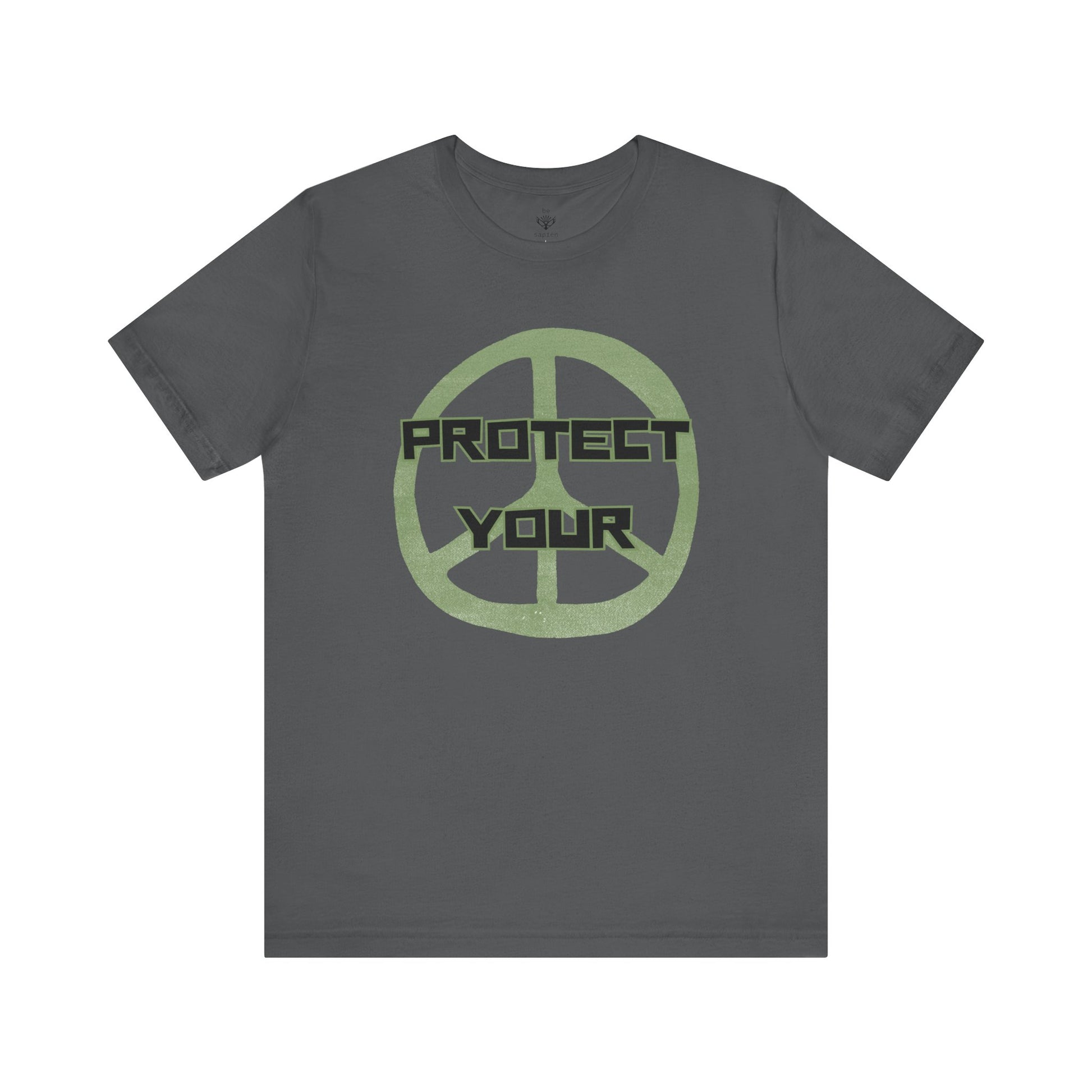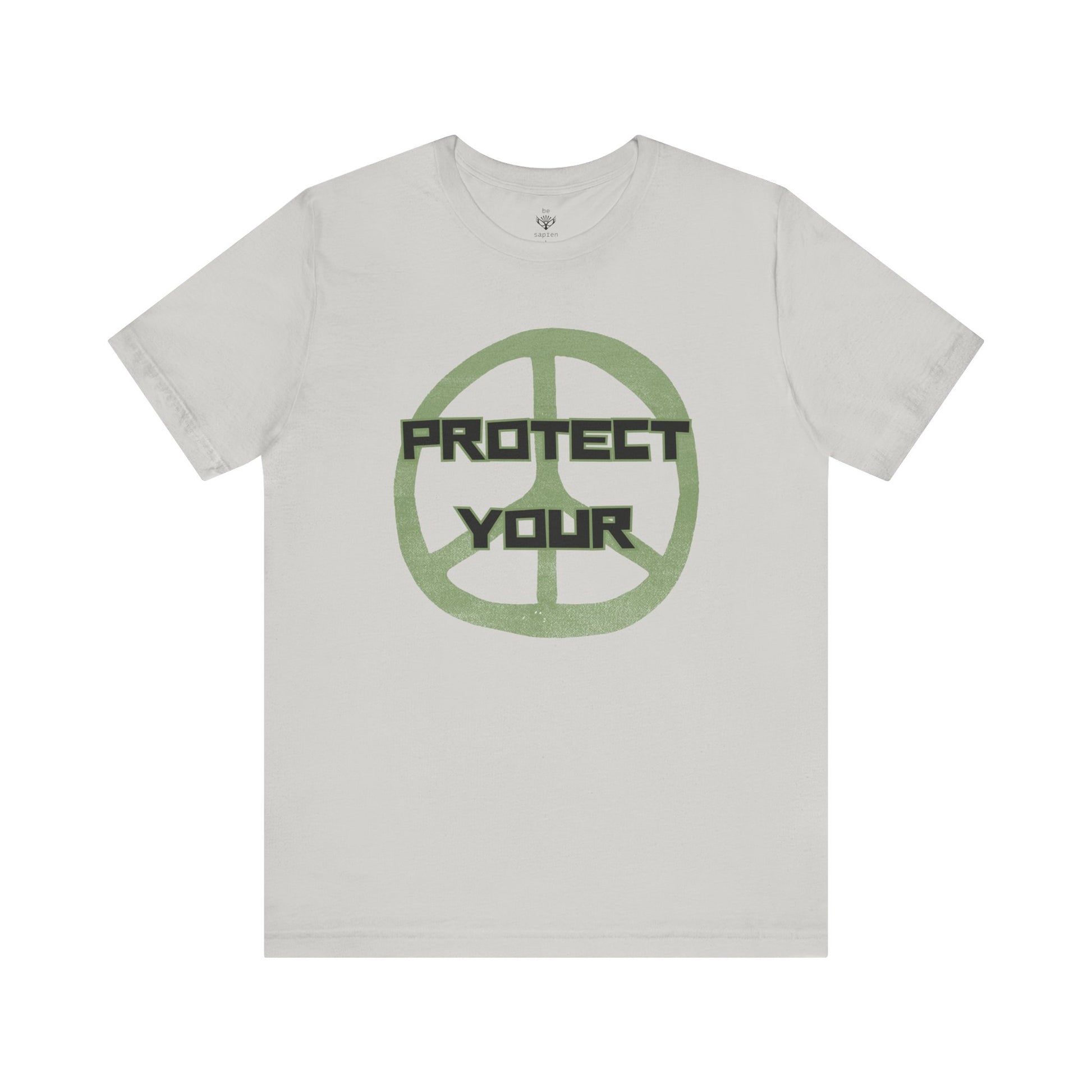 A lightweight, everyday tee that speaks softly but stands firm. The breathable Airlume combed cotton feels cool against the skin while the ribbed crew neck and shoulder tape keep the fit tidy after repeated wears. A faded peace-symbol graphic with bold block lettering gives the shirt a lived-in, activist edge—easy to layer under a jacket or wear solo on a warm afternoon. Wear it to rallies, casual meetups, or whenever you want your values visible without shouting. The tear-away label and thoughtful construction make it comfortable for long days of city walking, volunteering, or relaxed weekends at the market.